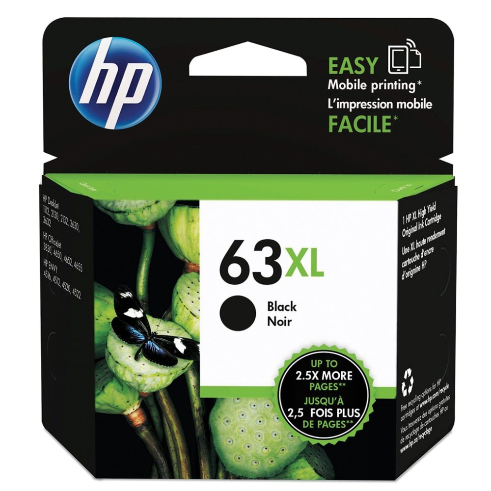 HP 63XL Black High-Yield Ink Cartridge, F6U64AN